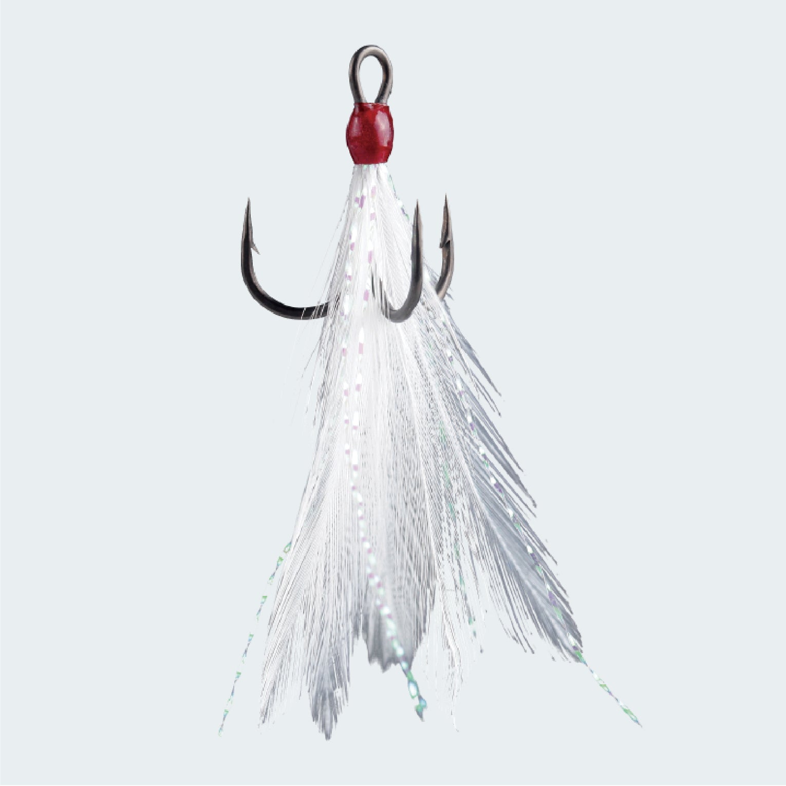 The treble is our extensively-tested Spear 21-SS – featuring a SS coating and needle point for excellent penetration. Feathers come in two different combinations: white and black/red. Binding thread is covered in epoxy resin to improve durability even after many strikes. Sizes range from 1 to 8 to cover a good range of lure sizes.