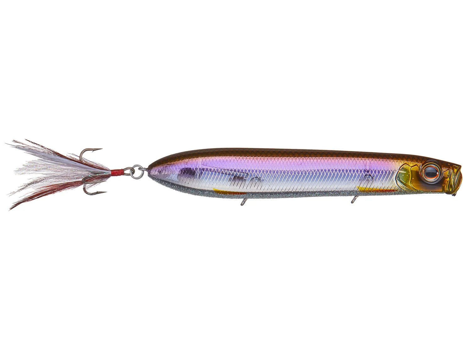 Its unique bill produces powerful splatter, spit and bubbles that appeal to the fish. A body designed for air-resistance reduction, and tungsten weights at the very end of its tail guarantee incredible distance even against head winds. It can now search a much wider area with just one cast. Excellent body balance allows it to make quick consecutive turns without jumping out of the water, making it move much like agitated bait fish chased by a bass. The bait readily triggers the fish to bite. The feather hooks attached to the tail serve as “resonance” in the intervals between stillness and motion of an action, take those light bites of a fish unable to break above water into full-on bites, and help support the hook’s suction. On the other hand, the resistance created by the feather hooks has the effect of producing more sharpness to the bait’s quick turns. Whether to attract far-away fish with dramatic action, or nervous fish with soft vibrations, the SB-125 is the one tool that can handle it all, regardless of any change in the day-to-day conditions of the fish. Make SB-125’s outstanding abilities a part of your repertory.