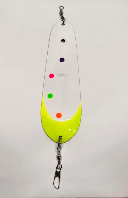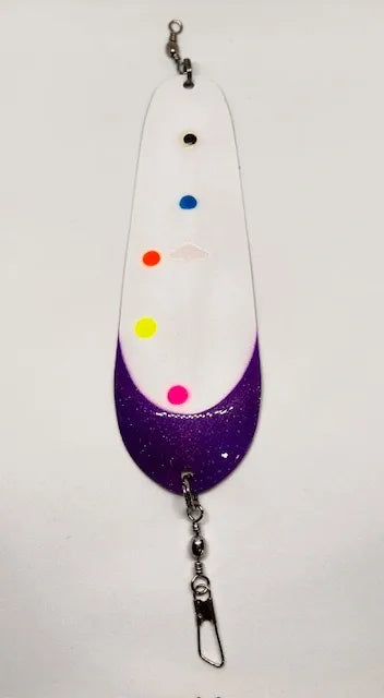 This specialty blade adds extra action to your lure due to its unique design. Each blade is inlaid with glitter for reflection of light and attraction of fish.