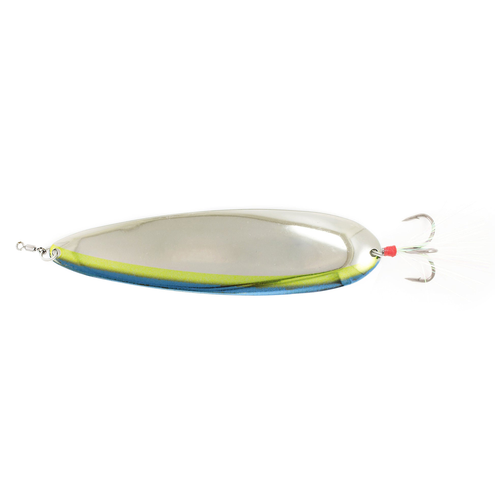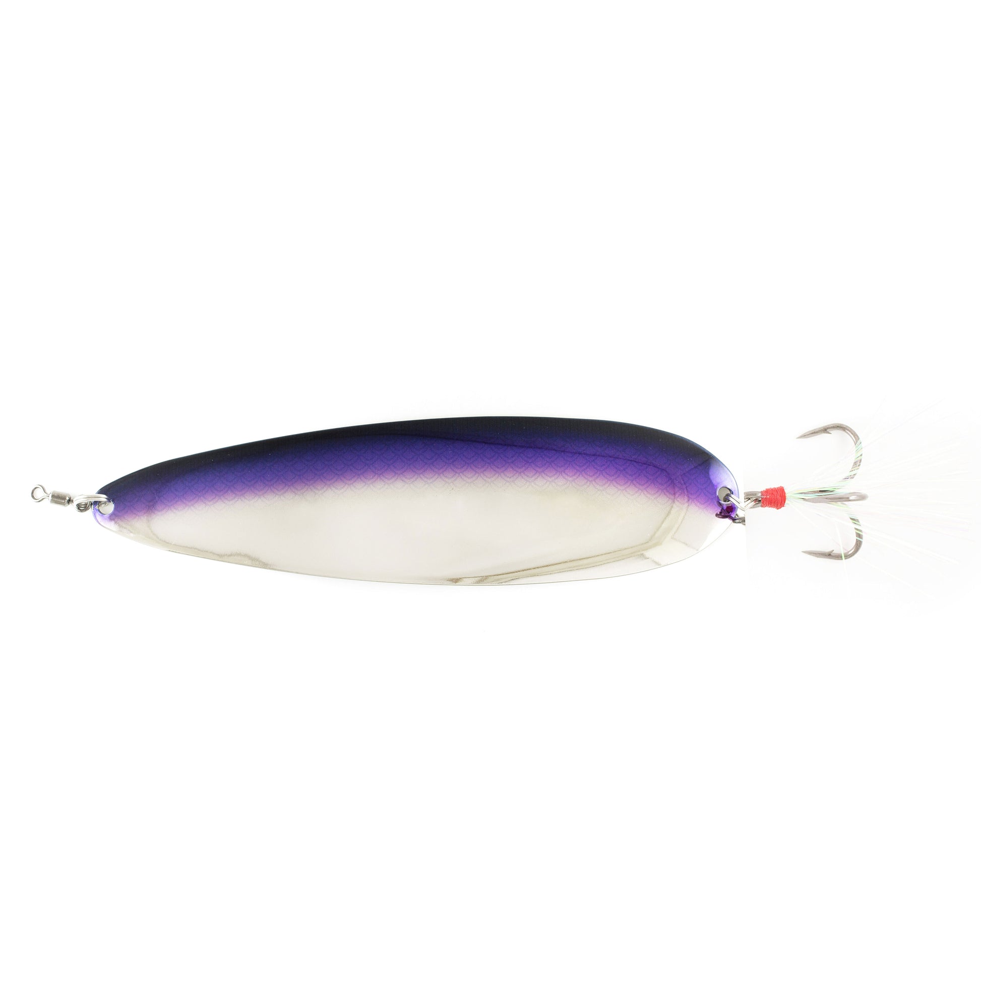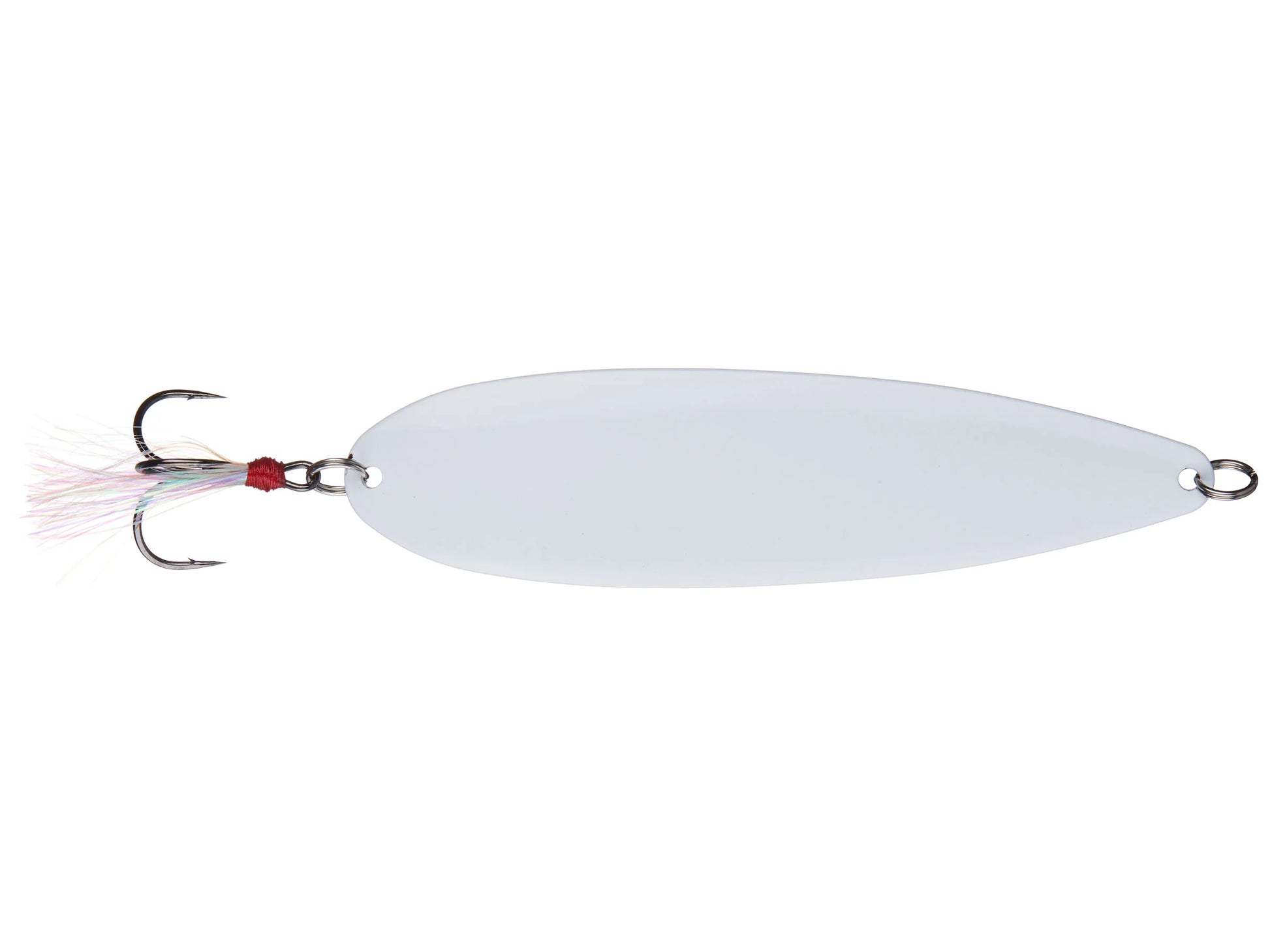 The Original Ben Parker Magnum Spoon is a sure winner. Featuring a premium 3/0 Decoy Treble tied with Pearl Flashabou, American Made Zinc Worth Split Rings, and finished with a Size 2 Owner Power Swivel at the top, this spoon is ready to fish out of the package!