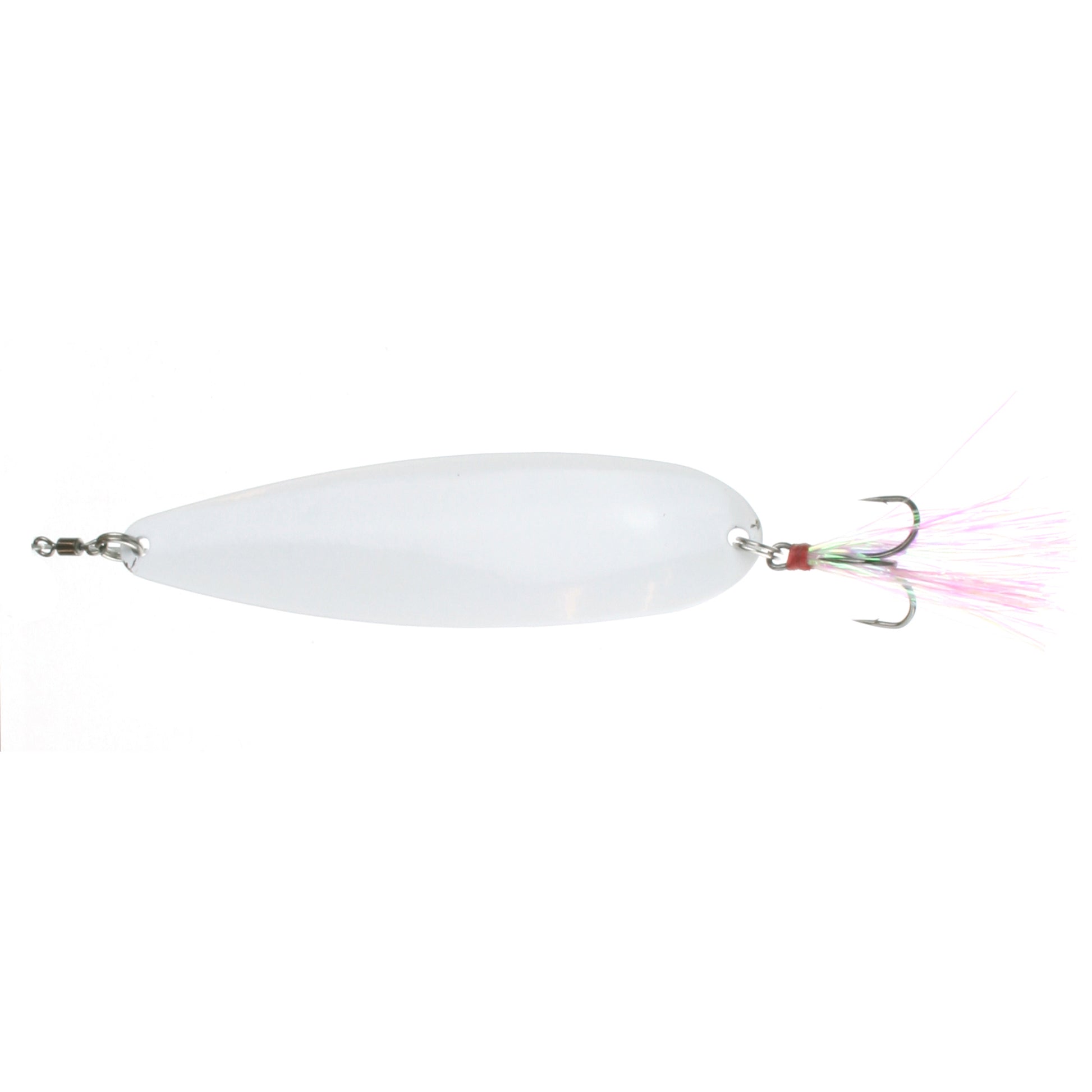 The renowned Lake Fork Flutter Spoon is one of the hottest baits on the market today. The Spooning technique has caught fire, and our 4 or 5 inch flutter spoons meet every need. Available in a variety of beautiful different finishes, this bait flutters perfectly, featuring quality Decoy trebles with hand-tied flashabou, Spro Power Swivels, and Worth split rings.