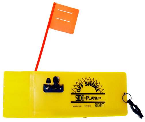 Each Yellow OR12L Side Planer includes a stationary red flag, OR19 (orange) release, OR16 (red) clip, 6/32 screw, nylon nut, split ring, instructions and is carefully ballasted to run flawlessly in rough water off of your rod line. Ideal for Walleye and most fresh water fish. To convert this board to a Tattle Flag™ board, you will need to purchase the OR12TF or OR12TFEK