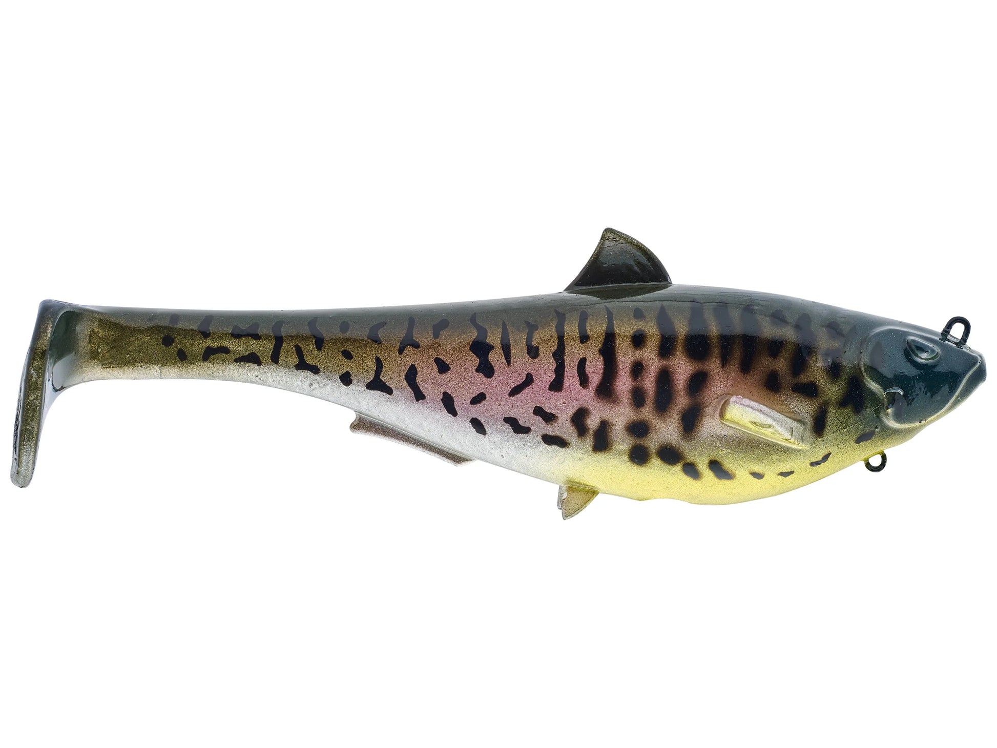 The Megalojohn 6" swimbait has been designed by Elite Series Angler John Crews to be a durable and highly versatile bait. With its great thumping action and the capability to be used with a slow roll or a fast retrieve, you can be sure to draw the attention of your next catch. Special features include the soft bait magnet to hold the hook in place, a swivel attached to the treble to keep the fish hooked, and a special blend of soft plastic for reliable action. Built with Gamakatsu hook and 1.75oz weight, the Megalojohn 6" is sure to impress.