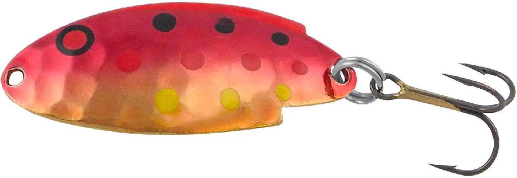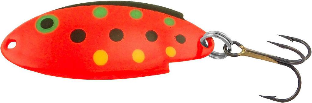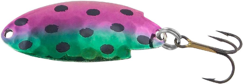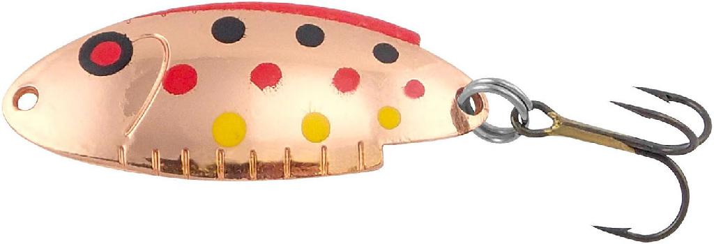 The Thomas Buoyant minnow is unsurpassed as one deadly trout and salmon lure! First issued a U.S. patent in 1946, the Buoyant is an erratic-action wobbler that imitates the darting motion of a frantic, fleeing baitfish. This action, combined with jewelry-quality finishes, creates a spoon that entices even the wariest of trout or salmon, and many other types of game fish, into striking. Their largest 5/8 oz. size is especially deadly on northern pike! It is important to use a moderately slow retrieve or troll speed for the Buoyant to achieve its most effective action. An occasional sharp twitch of the rod tip can really draw hard strikes! Made in the U.S.A. Sell Unit Each.